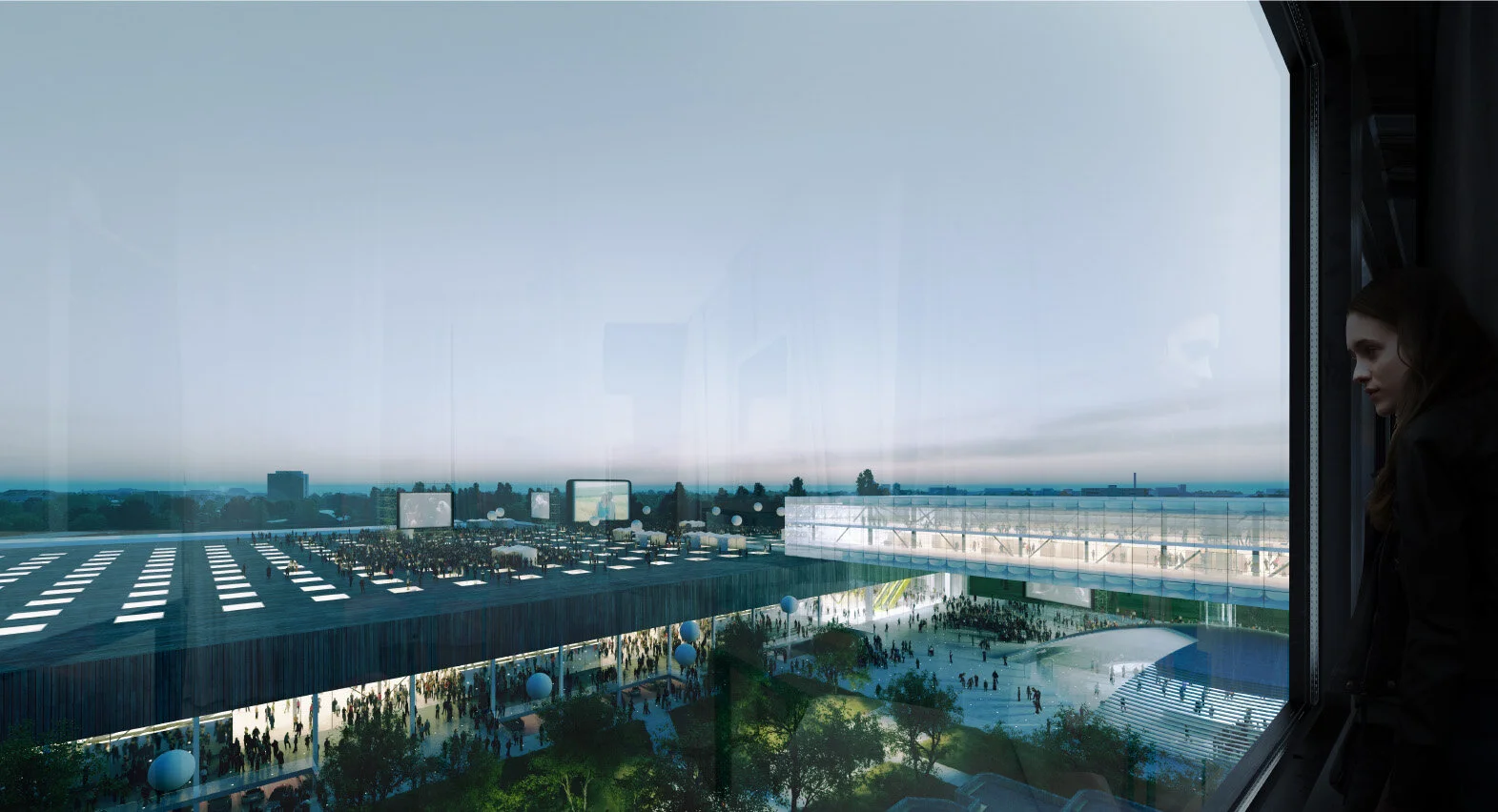 With the implementation of the PEX in the city, the activities that take place there become again urban activities, factors of animation, social life. The PEX offers new conditions to promote and develop this interweaving of the event and the city : largely glazed facades, large terrace on halls 3 and 4, hanging garden of hall 1. The choice to bring the halls back to the ground expands again these possibilities : for big events it is all the public space of the “cloister” including if necessary the Herrenscmidt street, for the occasion closed to the circulation, which can be mobilised. These many additional high added value spaces also anticipate the future needs of th ePEX and will limit future land purchase needs.