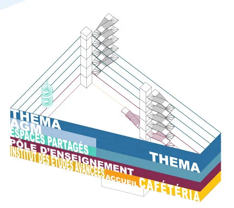 The MIR (Maison Internationale de la Recherche / International Research House) program is already very dense and the specific requirements of each of the entities exposed very clearly in the preliminary work. Therefore, to imagine a relevant solution we visited the site, met with the users’ expectations, in order to offer them maximum comfort, and the most pleasant and malleable use possible. Create in a way a building tool dedicated to the efficiency and desires of researchers.
