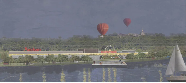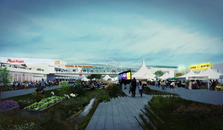 From a generic site standardized by the Hyper Market and its major challenges linked to the car, the project anchors a new paradigm which wishes to initiate new practices, where the time for leisure, well-being and good eating are new matrices at the Bouliac site.