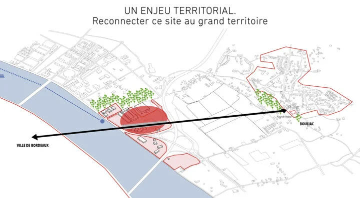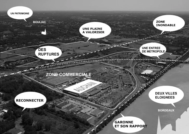 This metropolitan act wishes to re-articulate the love of the large scale and finally offer the Bouliac Plain the opportunity to organize an entrance to the Metropolis. We call the project Metropolitan Bouliac.