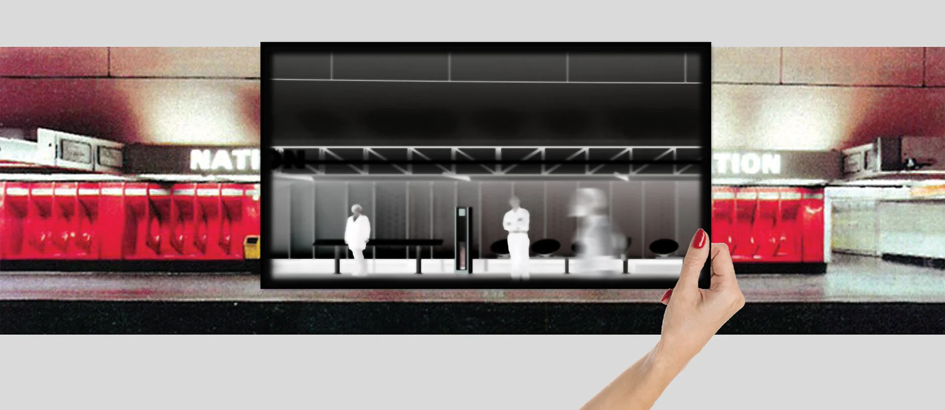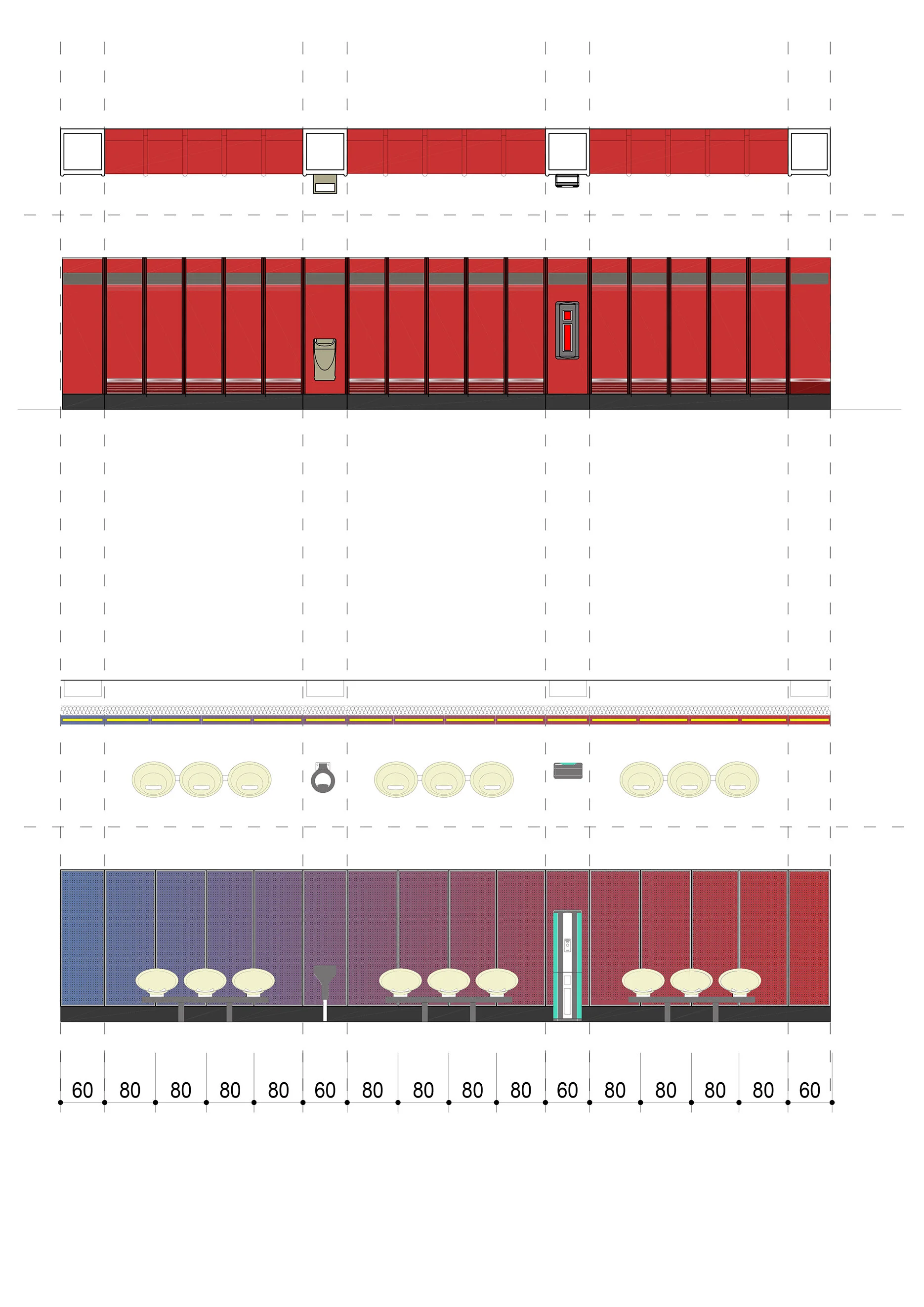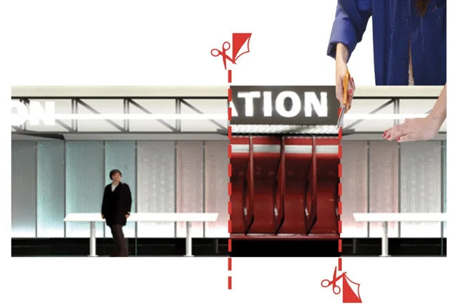 Here the first gesture of the study will be the first gesture of the site : deploy the various layers that have accumulated in the station to find, under the tinsel, the architectural accuracy of the place, intact.