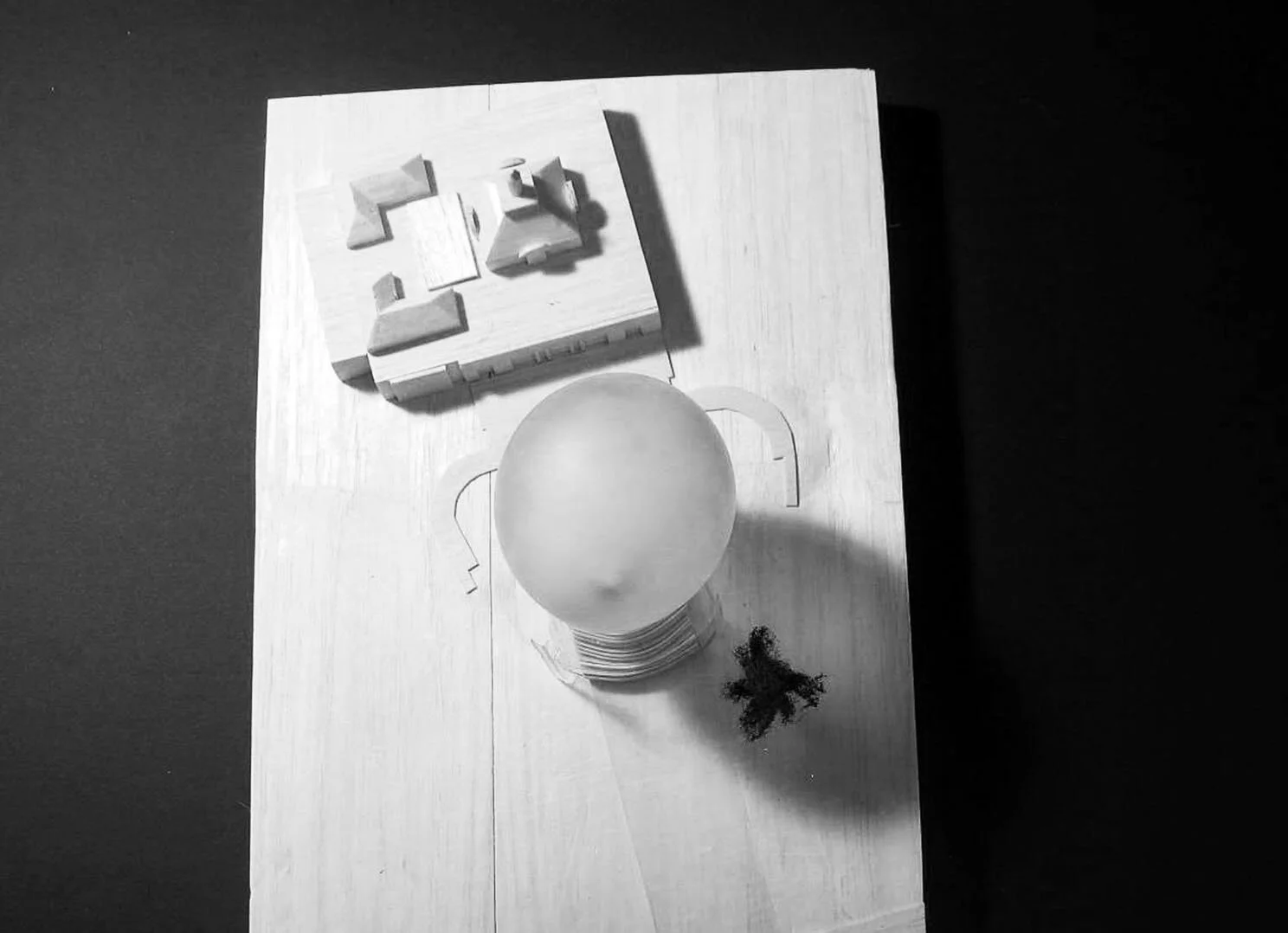 The cubic void above the Pavilion's amphitheatre and the exhibition space in the Gallery will both carry works by the artist Thomas Demand. Through this we will introduce dialectically both the geometry of the Gallery and its mode of inert observation into the ethereality of our event space; conversely we will bring the event into the solemnity of the exhibition space.